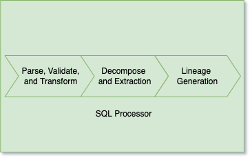 The above architecture graph demonstrates the three steps required to extract a lineage graph from a given SQL query.