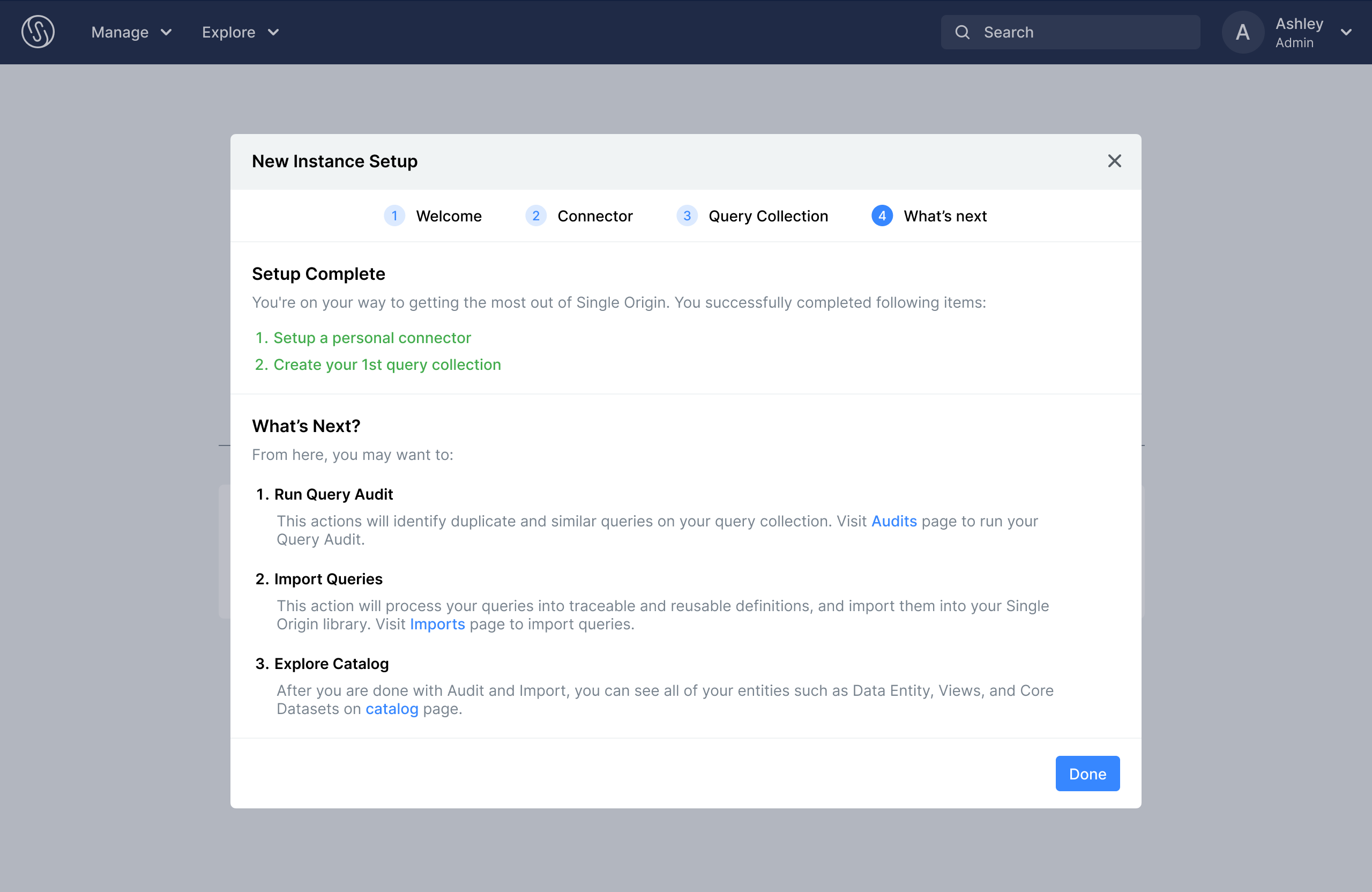 - Adding a setup wizard that will guide you through the initial setup of your instance, from connecting to your first warehouse to creating your first query collection