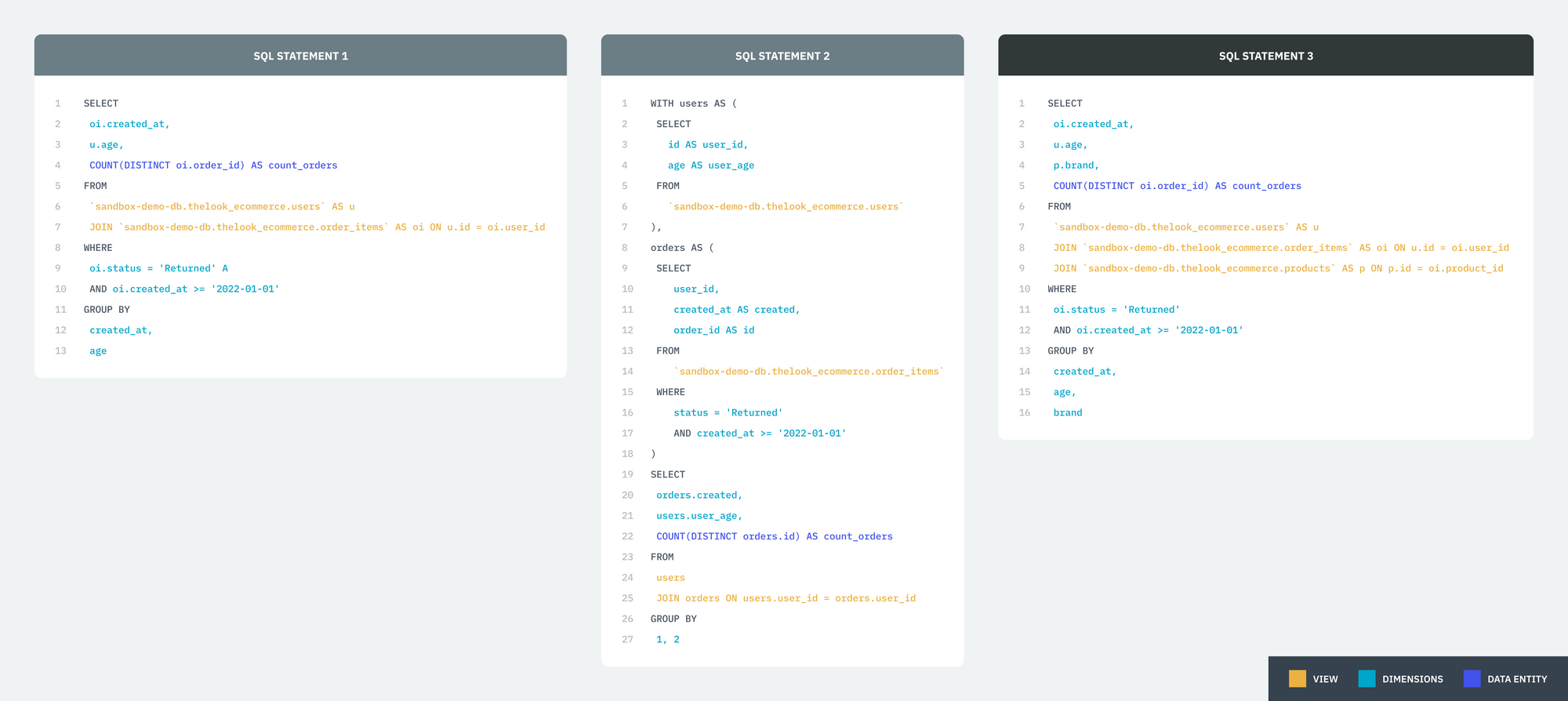 | 2 | Similar | Statement1, Statement2, Statement3 | db.schema.users, db.schema.order_items |